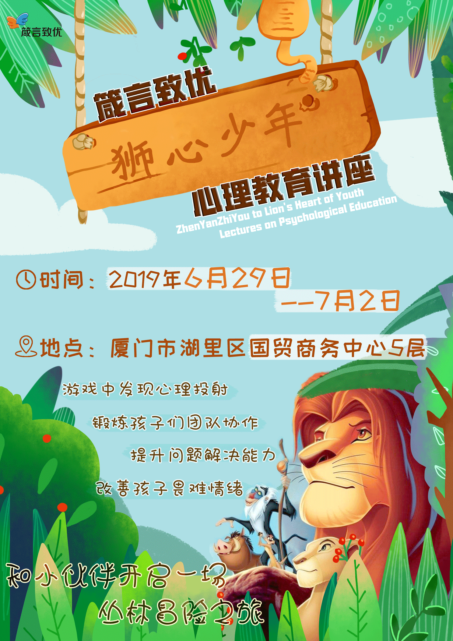 2019年6月29日,周六下午,“箴言致优·狮心少年”讲座活动顺利举办,此次活动将为期数天,共计上百个家庭受邀来访。