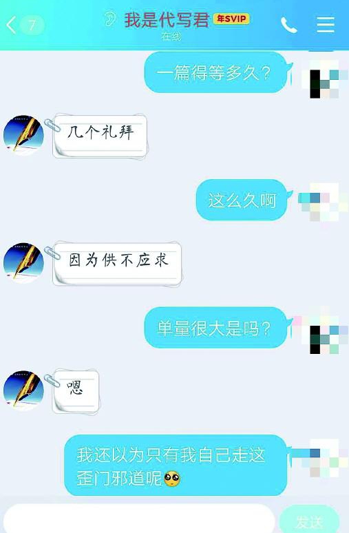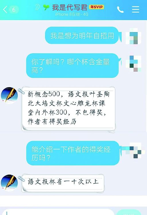 记者联系代笔服务卖家,提出想靠作文竞赛获奖参加自主招生的需求。对方表示:不包得奖,但曾有十余次代笔作品获奖的经历。他还列举了个奖项,声称凭此即可获得我国某著名高校的自主招生资格。记者查阅他所提院校的自主招生简章,该奖项并未列在其中。卖家称,付费后拿到代笔的作文需要等几周时间,因为“业务量太大,供不应求。”